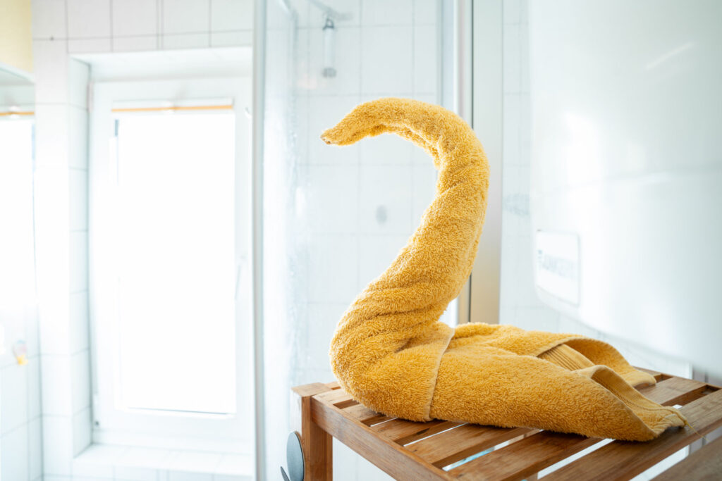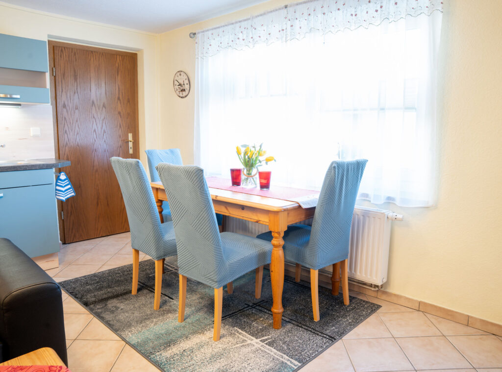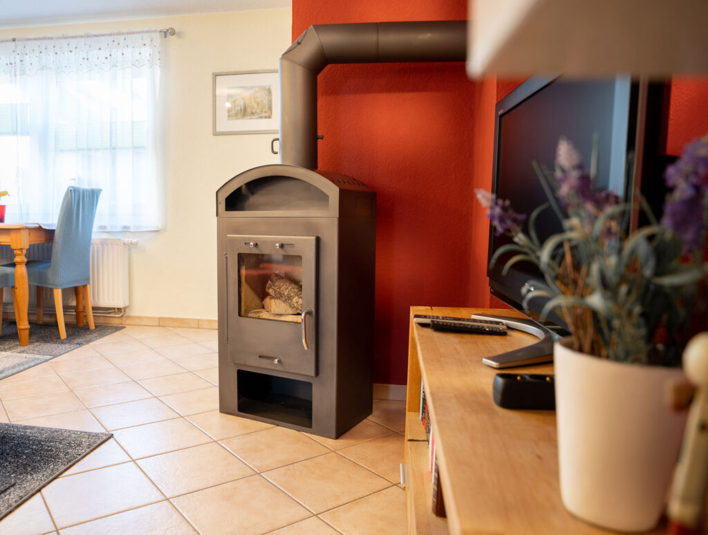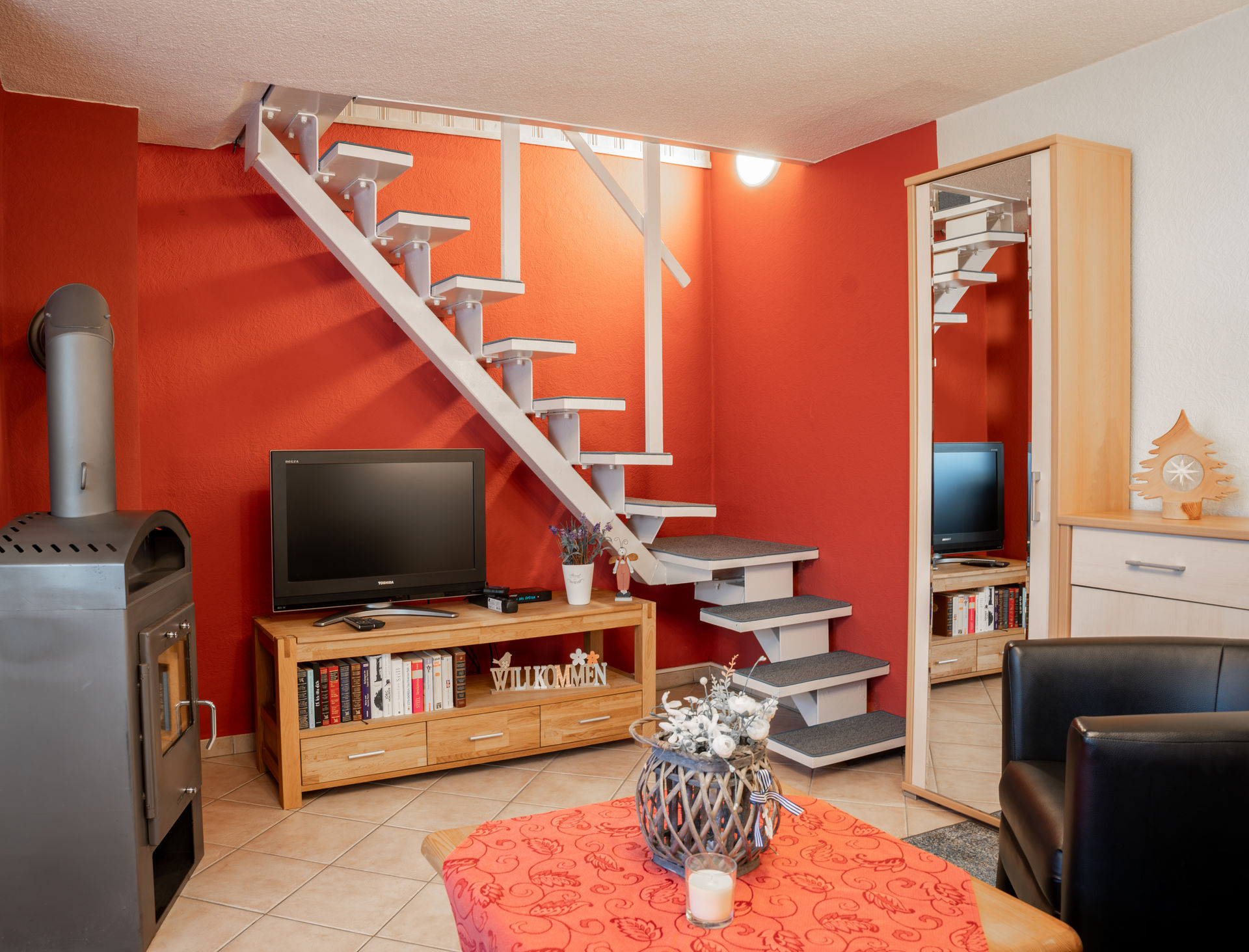 Das Ferienhaus befindet sich auf unserem großen Grundstück im rückwärtigen Bereich . Die Räume sind hell und freundlich, der Fußboden im Erdgeschoß ist komplett gefliest. Der offene Wohnraum/Essbereich ist ausgestattet mit einer Couchgarnitur + 1 Sessel, ebenso ein Esstisch mit 4 Stühlen, Kabel-TV sowie einem Ofen, der bei Bedarf geheizt werden kann. Die Küchenzeile verfügt über ein Cerankochfeld, Kochgeschirr, Kühlschrank, Kaffeemaschine, Wasserkocher, Toaster, sowie Mikrowelle und Geschirrspülmaschine. Ausreichend Geschirr, Gläser und Besteck sind selbstverständlich vorhanden. Das Schlafzimmer befindet sich im Obergeschoß, ein Doppelbett, ein Einzelbett und ein Babybett, sowie ein eingebauter Kleiderschrank sind vorhanden. Das Bad im Erdgeschoß verfügt über Dusche, Toilette und Waschbecken. Handtücher und Geschirrtücher sind inklusive. Ein Parkplatz direkt am Ferienhaus steht ebenfalls zur Verfügung.